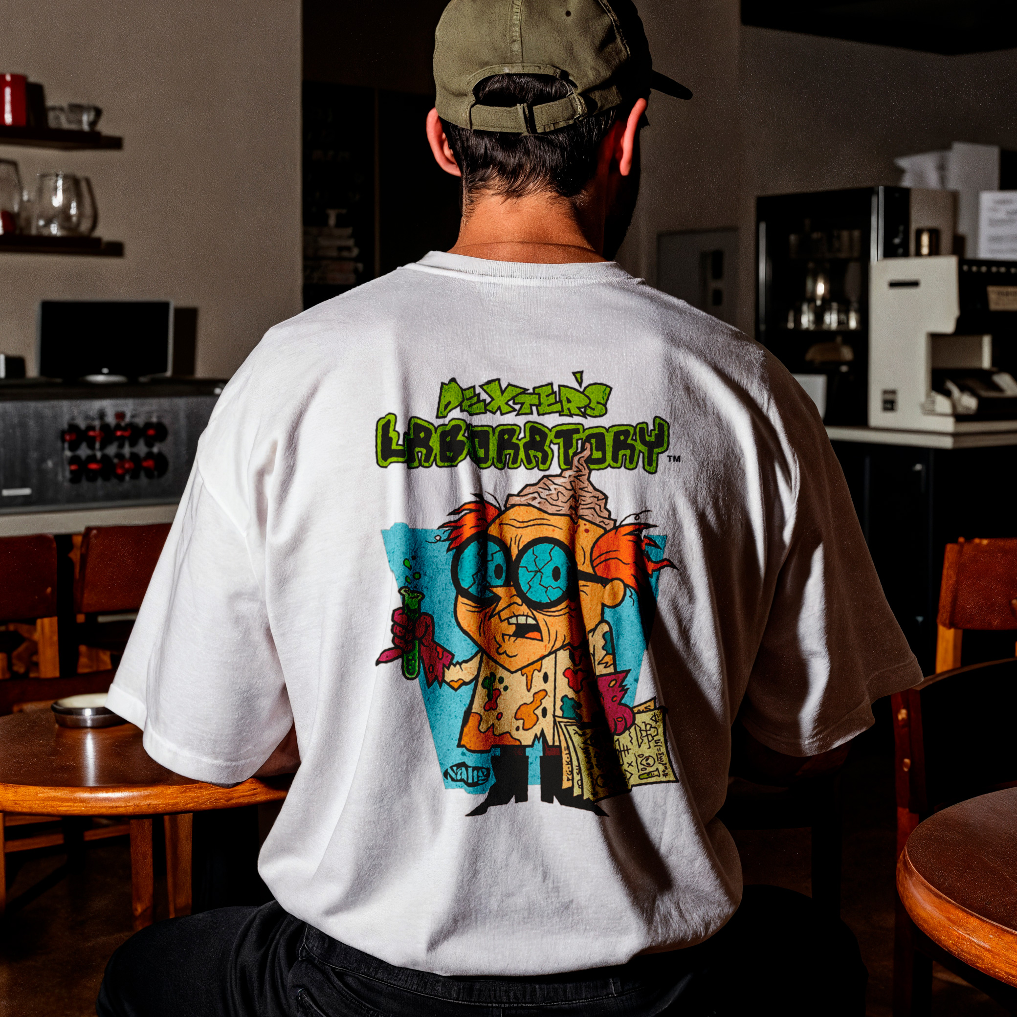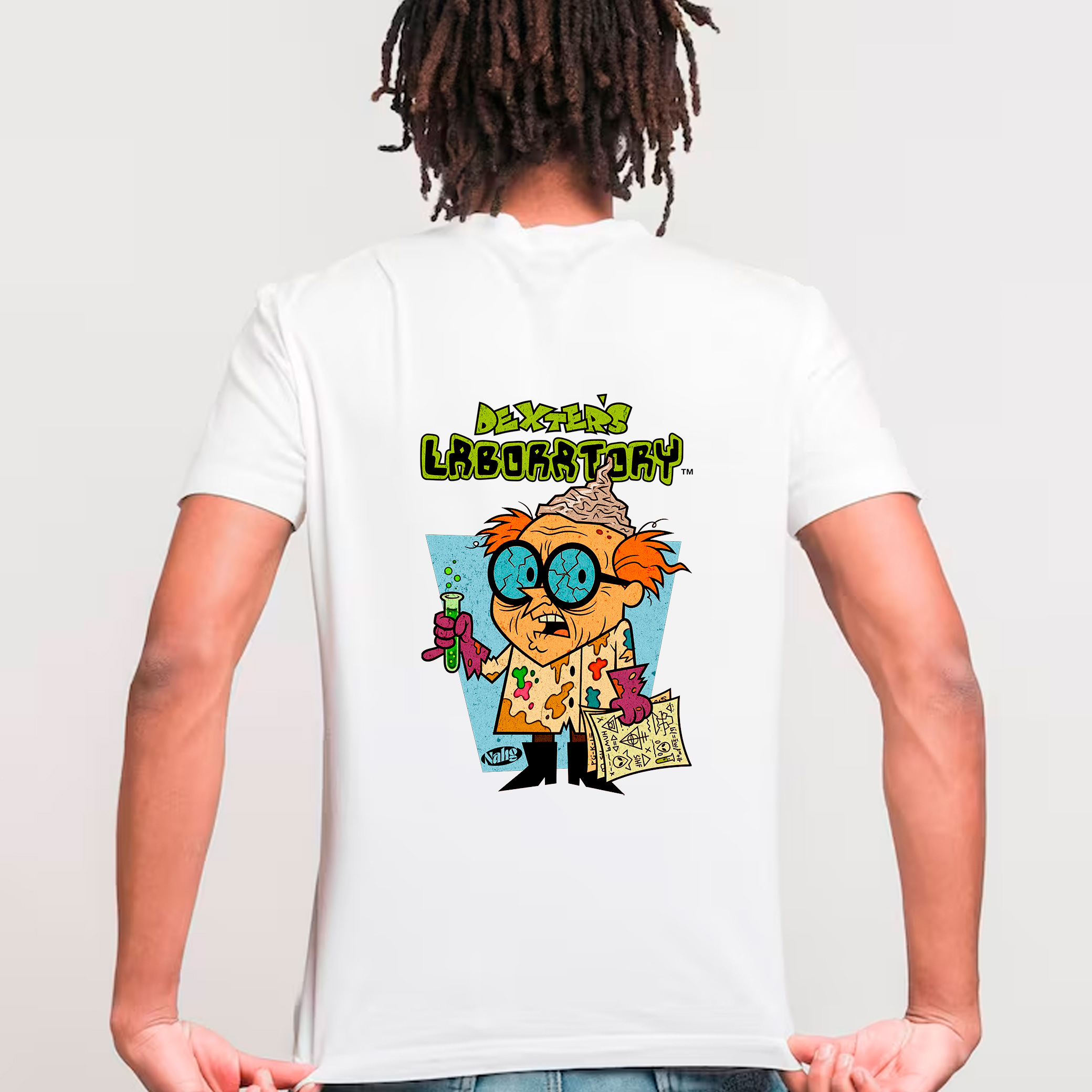 Remera oversize unisex Dexter Conspiranoico, nuestra infancia quedó atrás, el paso del tiempo corre para todos. Colección Retrotoons.
