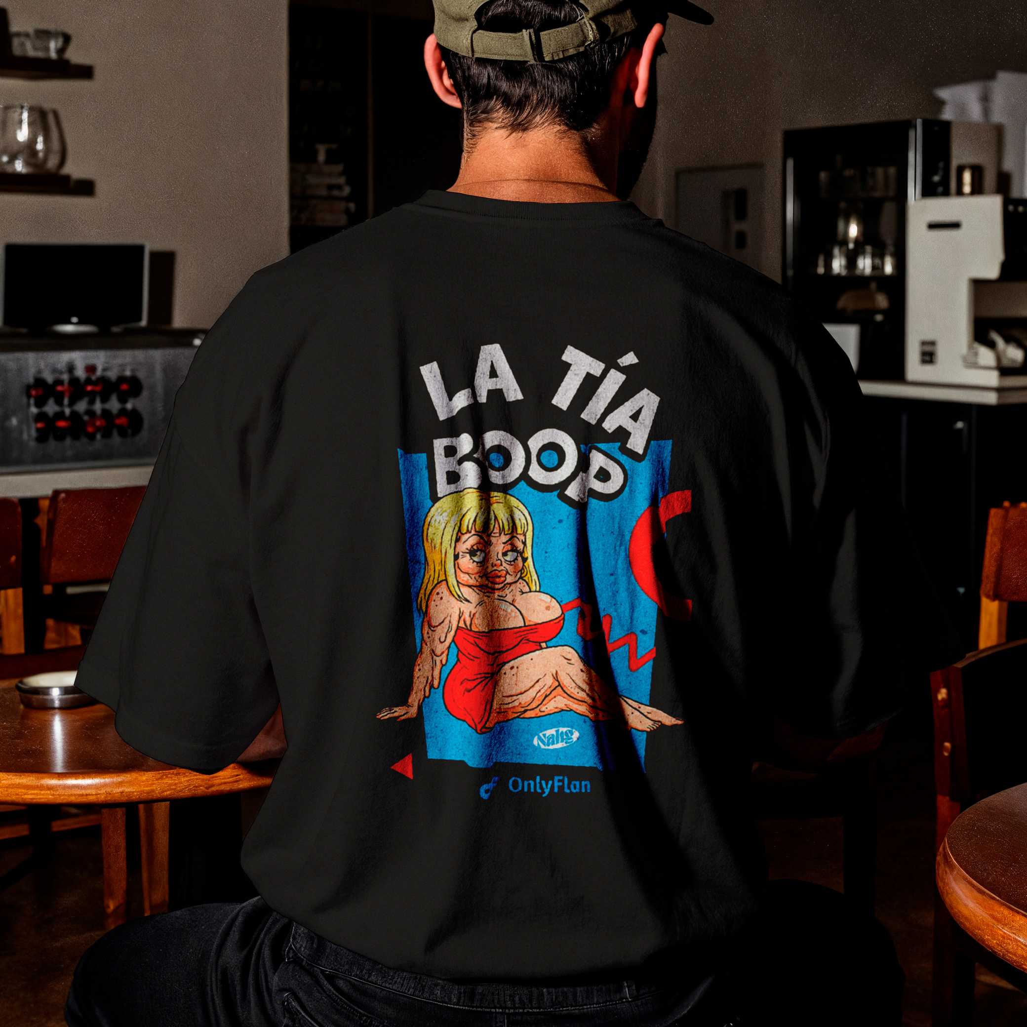Remera oversize unisex La Tía Boop, nuestra infancia quedó atrás, el paso del tiempo corre para todos. Colección Retrotoons.